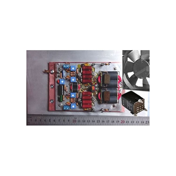 Диапазон частот - 1,8 до 30 МГц. Конфигурация: четыре полевых транзистора, схема построена на сложение мощностей на транзисторах SD2933 IC. Этот усилитель может работать с напряжением питания от 40 до 50 вольт постоянного тока в зависимости от требований. Смещения для каждого транзистора независимо регулируемые.